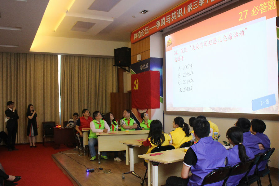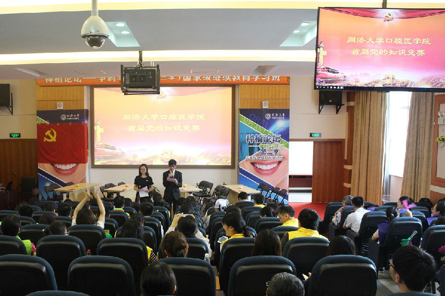 为进一步深化“两学一做”常态化学习教育,提升全院党员同志的思想政治水平,6月14日晚,口腔医学院首届党的知识竞赛在学院二号楼五楼会议中心隆重举行。教工党员和学生党员分为四队,分别以“梦紫队”、“炎黄队”、“星火队”、和“红研队”为队名,并制作了风格各异的VCR,展示自己的风采,视频内容创意十足,充分表现出口院人自信乐观、团结向上的精神面貌。