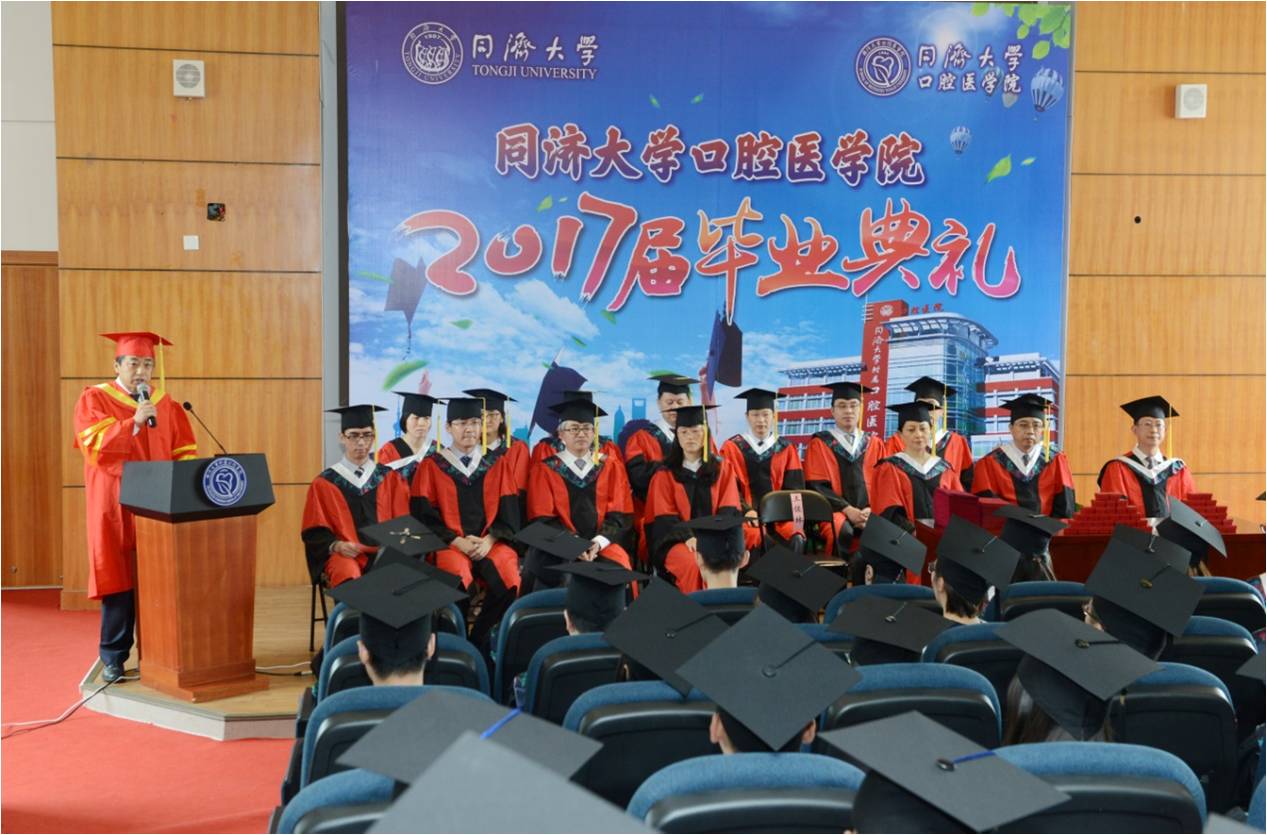 毕业典礼在雄壮的国歌声中拉开帷幕,王佐林院长致毕业辞。他首先向毕业生们表示最热烈的祝贺,祝福他们在同济完成了人生中一个重要阶段的学习,毕业并不意味着结束,而是新的开始,有美好的未来等着大家。同时他也提出了殷切的希望,鼓励大家能始终保持踏实谦和的心态,不断努力学习、积极进取,在新的工作岗位上做出新的成绩,成为一名合格的口腔医生。王院长的讲话深刻感人,博得了在场同学们的阵阵掌声。