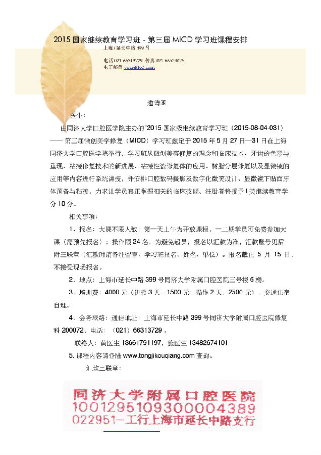 由565net必赢客户端主办的“2015 国家级继续教育学习班(2015-08-04-031)——第三届微创美学修复(MICD)学习班”定于2015 年5 月27 日—31日在上海565net必赢客户端举行。学习班从微创美容修复的理念和临床技术、牙齿的色彩与重现、粘接修复技术的新进展、粘接性瓷修复体的应用、树脂分层修复以及显微镜的应用等内容进行系统讲授,并安排口腔数码摄影及数字化微笑设计、显微镜下贴面牙体预备与粘接,力求让学员真正掌握相关的临床技能。