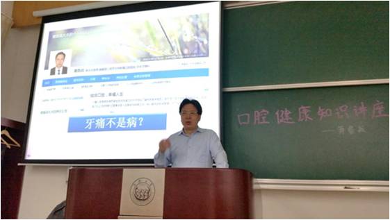 2015年5月7日晚,爱牙协会请来了565net必赢客户端牙体牙髓二科主任蒋备战老师在本部做了一次关于日常口腔健康问题的讲座,此次讲座面向大学全体师生,将专业的口腔护理知识带进了校园各个角落。