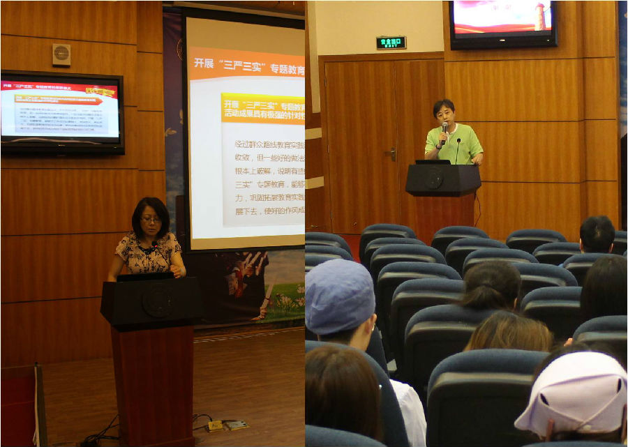 华咏梅书记在报告中简要介绍了“三严三实”的提出时间和背景,督促党员同志充分认识开展“三严三实”专题教育的重要意义,深刻理解“三严三实”的内涵及内在联系;同时,华书记还就学院和医院各项工作的开展详细分析了目前存在的“不严不实”问题。最后,华咏梅书记对如何积极践行“三严三实”提出要求,希望全院党员同志切实增强践行 “三严三实”的思想自觉和行动自觉,坚持把“三严三实”作为立志修身之本,以加强党性修养为核心,以提升道德境界为基础,恪守党的宗旨,坚持廉洁奉公,强化法治思维。真正把“三严三实”内化于心、外化于行,凝聚起推动学院和医院发展的强大力量,努力破解发展瓶颈难题,实现学院和医院长期稳定、可持续发展。