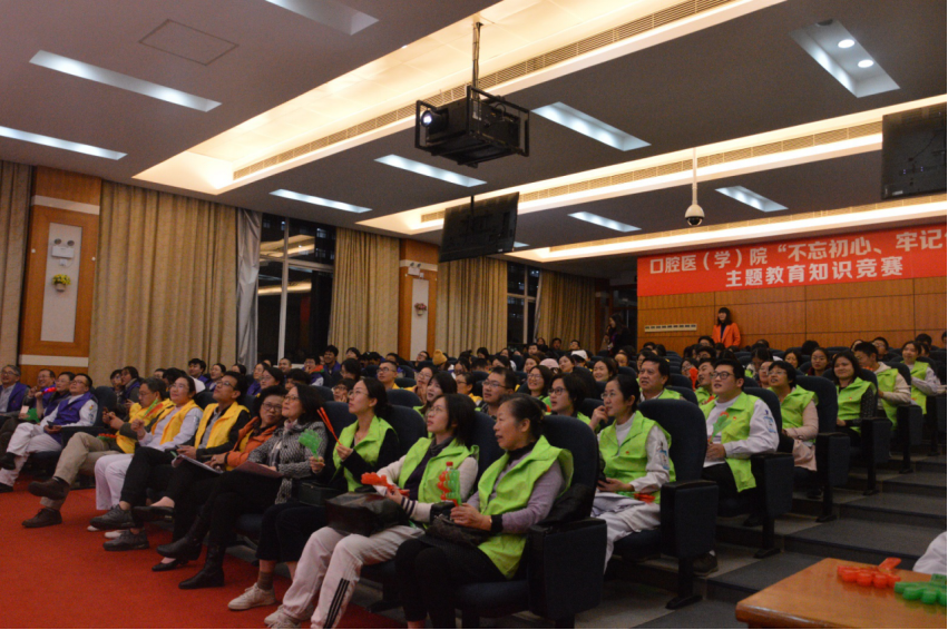 进一步深化“不忘初心、牢记使命”主题教育,检验学习成果,11月19日晚,口腔医(学)院“不忘初心、牢记使命”主题教育知识竞赛在学院二号楼五楼会议中心隆重举行,全体在职教工党员和学生党员以及部分退休党员参加了竞赛。参赛人员分为四队,分别以“使命必达队”、“炎黄队”、“牢记使命队”、和“梦知研队”为队名,并制作了风格各异的VCR,展示自己的风采,视频内容创意十足,充分表现出口院人自信乐观、团结向上的精神面貌。