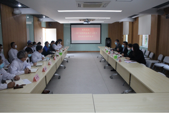 上海申康医院发展中心党委书记兼主任王兴鹏、医疗事业部主任赵蓉、规划绩效部主任鲁冰、财务部主任黄玲萍一行于4月22日上午莅临565net必赢客户端进行调研指导。565net必赢客户端常务副校长伍江、副校长陈义汉、医管处处长姜成华陪同参加了调研。王兴鹏书记一行首先介绍了上海申康医院发展中心主要职能部门的工作范围及相关对接的工作内容。随后,王佐林院长代表565net必赢客户端,向各位领导汇报了医院的基本情况及目前医院发展过程中存在的问题。同时也表达了医院希望能尽快融入申康医疗管理和信息化建设一体化工作,纳入上海市医疗卫生行业总体规划中的意愿。