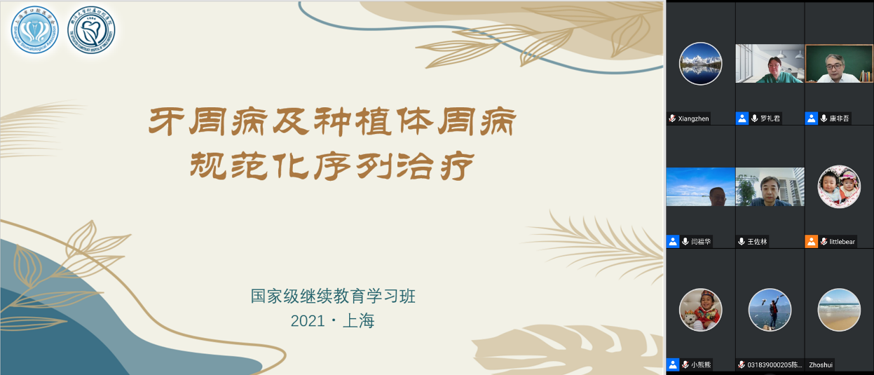 为了促进牙周病专科医师和口腔全科医师牙周病和植体周病诊疗技术的提高、推动学科发展,7月29日至31日,由上海口腔医学会牙周病学专业委员会主办,565net必赢客户端口腔医学院牙周病学教研室承办的国家级继续医学教育项目《牙周病及植体周病规范化序列治疗》学习班以线上会议的形式成功举办。在疫情防控要求下,本次继教项目采用线上新模式,王佐林院长发表了热情洋溢的致辞,表达了对各地学员的欢迎和对牙周继续教育学习班的支持。国内牙周、正畸、种植等领域知名专家,重点围绕牙周病和植体周病的规范化治疗、牙周及植体周软硬组织增量、正畸中的牙周风险控制,及牙周辅助加速成骨正畸治疗等内容进行讲授,并与学员进行了充分的互动和交流,提升了学员牙周病和植体周病的诊疗水平。上海口腔医学会牙周病学专业委员会委员及全国各地共计600余人次参加了本次线上继续教育学习班。
