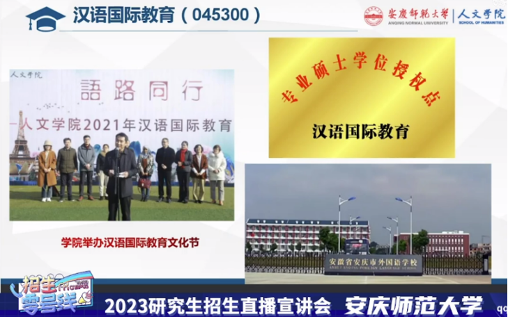 抓落实抓创新,“直播”宣讲促招生。9月22日,在研究生院的统筹安排下,beat365英国官方网站主动参与、积极配合,开展研究生招生线上直播宣讲。本次宣讲活动在哔哩哔哩、微博、微信、QQ等平台同步直播,吸引了众多考研学子关注,最高峰达3.6万人关注。在直播宣讲中,副院长沈志富老师、汉语国际教育专业张莹老师就beat365英国官方网站发展状况、师资力量、办学特色、人才培养、科研成果、学位点招生信息与就业前景等方面的情况作了详细介绍,对考研学子们提出的涉及奖助政策、报考资格、报考难度、招生指标、录取与调剂等共性问题作了详细解答,考生参与热情高涨,达到了良好的宣传效果。此外,汉语国际教育专业硕士2023年首次招生,成为本次招生宣传的一大特色和亮点。