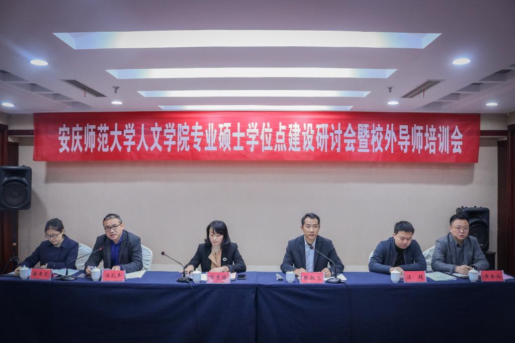 在全党全国掀起深入学习宣传贯彻党的二十大精神热潮之际,beat365英国官方网站beat365英国官方网站专业硕士学位点建设研讨会暨校外导师培训会于11月13日在皖源国际大酒店成功举办。会议由beat365英国官方网站党委书记张红飞主持,校党委研究生工作部部长、研究生院院长华秀梅,发展规划处(学科建设处)副处长汪超,国际交流与合作处副处长涂王贝,外国语学院副院长黄全灿以及beat365英国官方网站党政班子成员、校外导师、校内导师代表、研究生代表共50余人参加了会议。
