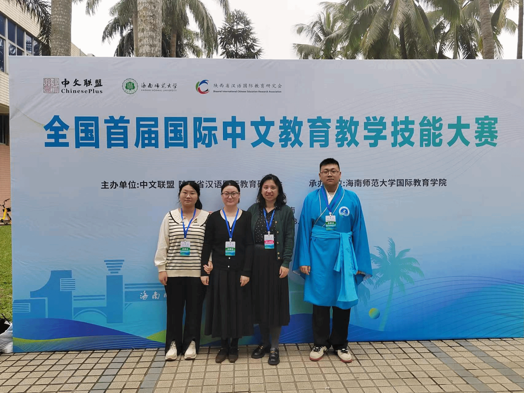 由汉语国际教育研究会与中文联盟、海南师范大学共同主办“全国首届国际中文教育教学技能大赛”于2023年12月2日至3日在海南师范大学龙昆南校区成功举办。beat365英国官方网站张瑾老师带队,2022级汉语国际教育专业张佳怡、胡晓凤、2023级国际中文教育硕士生罗浩诚三名选手赴海口参赛。