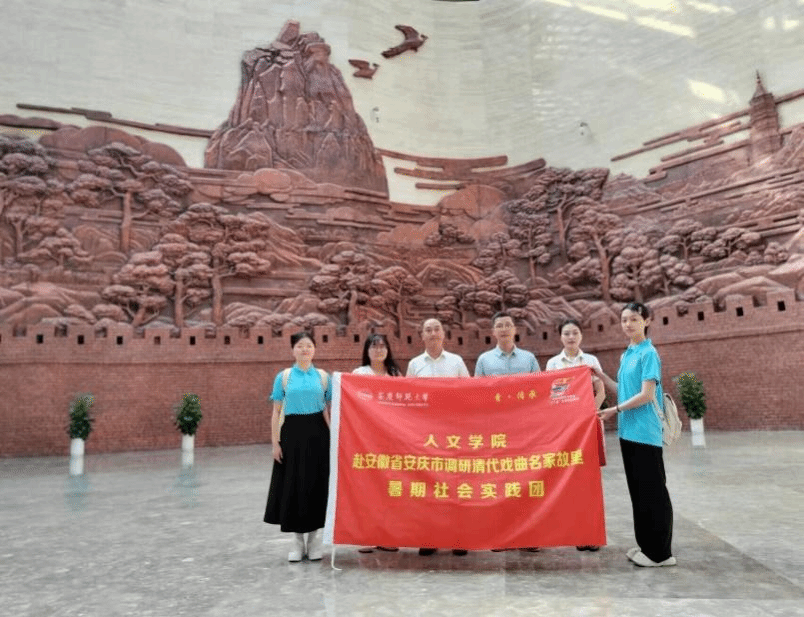 “徽戏的老家就是安徽的首府安庆”——在安徽中国黄梅戏博物馆中,有一副京剧名画《同光十三绝》,在画作的上方,有这样一行源于《中国京剧史》的字样。为进一步学习了解清代戏曲名家在安庆地区的活动状况,7月5日下午,beat365英国官方网站“青·传承”调研清代戏曲名家故里暑期社会实践团队的两名成员前往安徽中国黄梅戏博物馆进行考察调研活动。