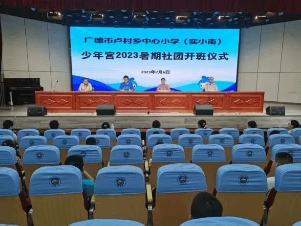 7月6日上午,广德市卢村乡中心小学(实小南)少年宫2023年暑期社团开班仪式在报告厅召开。会上,少年宫暑期社团负责人万恒发主任介绍了暑期社团的基本情况,并突出强调课堂纪律与开班安全。薛正阳同学作为团队代表发言,对即将担任辅导员的各团队成员做了简单介绍,在课程安排、教育规范、安全保障等方面提出要求。执行校长王宏强调要关注学生需求,突出社团课程特色,注重课程的科学性、持续性、协同性、安全性,将暑期少年宫打造成农村孩子们成长和进步的学园、乐园和趣园。