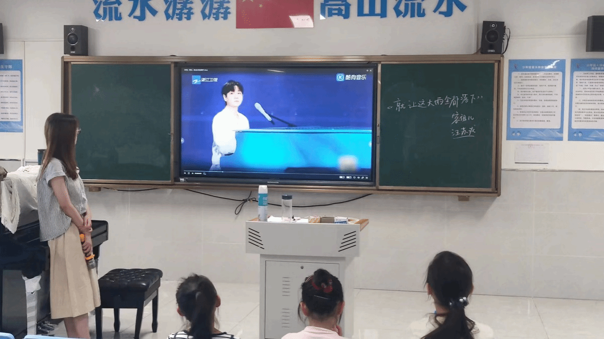 音乐社团旨在培养学生对音乐的热情,在课余时间,通过对流行歌曲、爱国歌曲、儿歌民谣的学习,感受不同种音乐的独特风格特点,增强学生们的节奏感和创造力。音乐老师楼丝雨讲述自己的课堂感想:“在第一堂课上,我们首先让小朋友们做了自我介绍,共同学习了《就让这大雨全都落下》这首歌,稚嫩的声音里透露出了她们对音乐的喜爱,我们有信心,在接下来的两周内,师生一同学习音乐,一同感受音乐的魅力!”