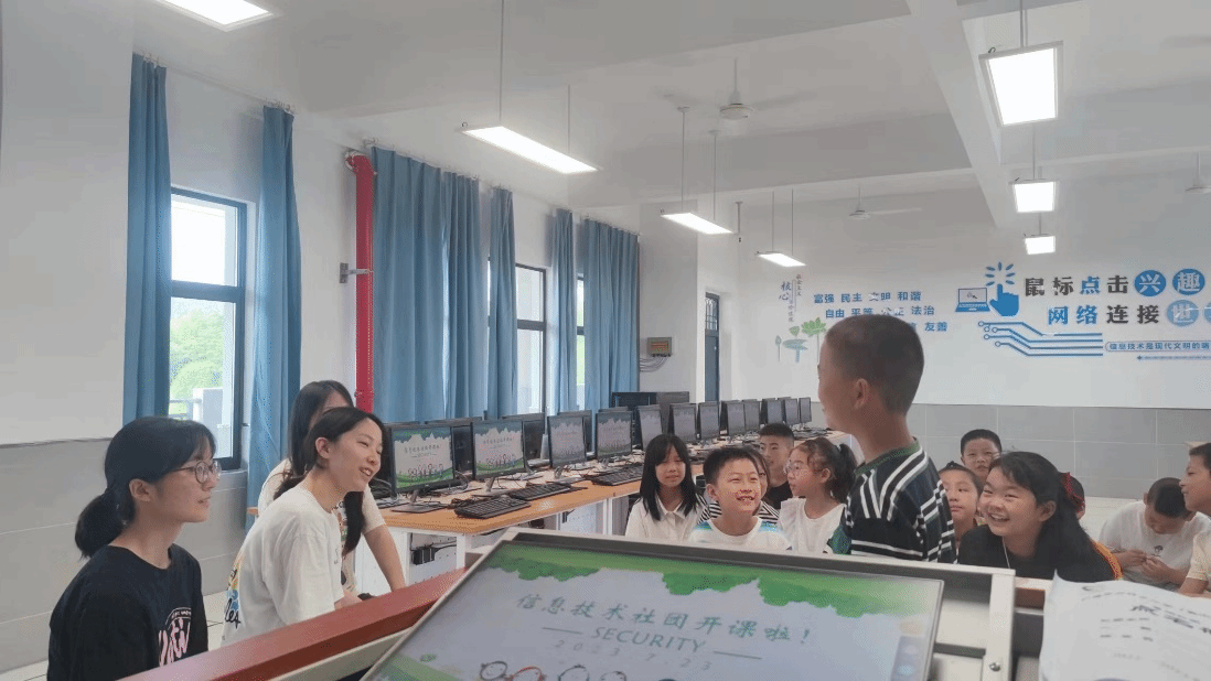 信息技术课堂开展“开学第一课”,学生们热情洋溢、积极配合,在自我介绍中分享自己的特长和爱好。在轻松愉悦的交流氛围中,教师们了解学生的信息技术课程进度,掌握学生计算机水平,并针对薄弱点课设课程学习。据信息教师曹韵涵所说:“信息技术社团课程主要在于培养学生的信息技术兴趣和意识,让学生了解和掌握信息技术基础知识和技能。作为教师,我们与学生是平等的,要尽可能遵循学生意愿,筛选感兴趣的课题进行教学;针对基础薄弱的学生,我们安排有教师一对一教学,让学生们尽可能学有所成。”