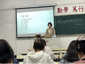 五位学长学姐毫无保留地和同学们分享了从备考到上岸的心路历程,其中有日复一日的勤勉、有卧薪尝胆的坚持、更有上岸时喜极而泣的快意和释然。一场精彩纷呈的分享会,拉近了研究生和本科生的距离,同学们不仅直观地感受到了考研的艰辛,更体会到为目标破釜沉舟的必要决心。