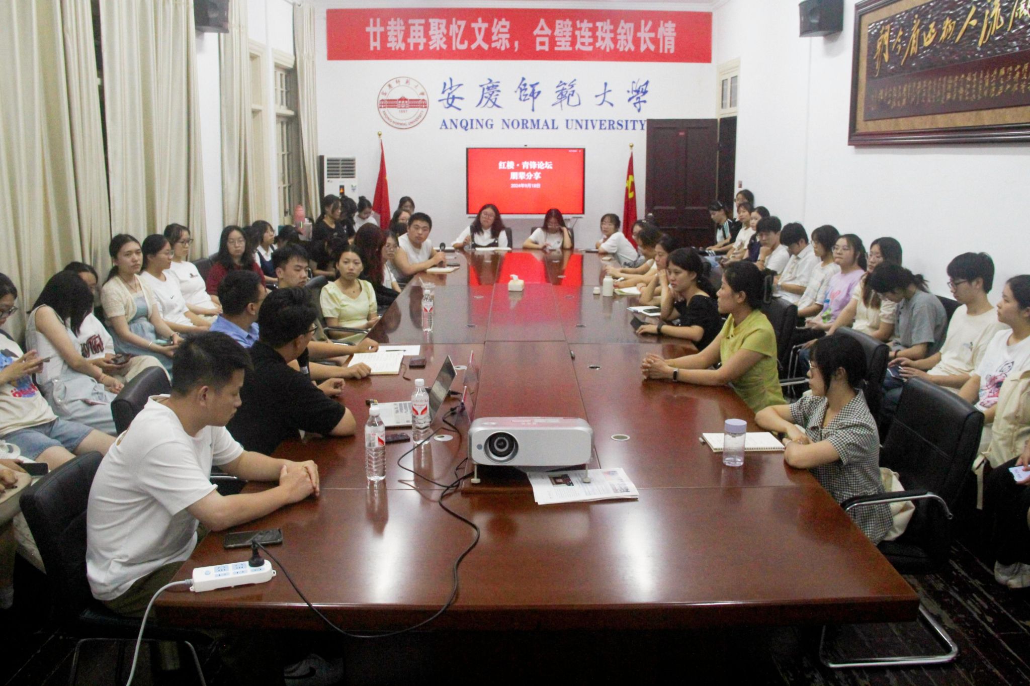 9月18日,beat365英国官方网站举办“红楼·青锋”论坛九月朋辈交流,论坛邀请到了马克思主义学院2022级硕士研究生、2024年全国“青马工程”高校班学员李宝鑫做分享,青马班近70名学员参会。