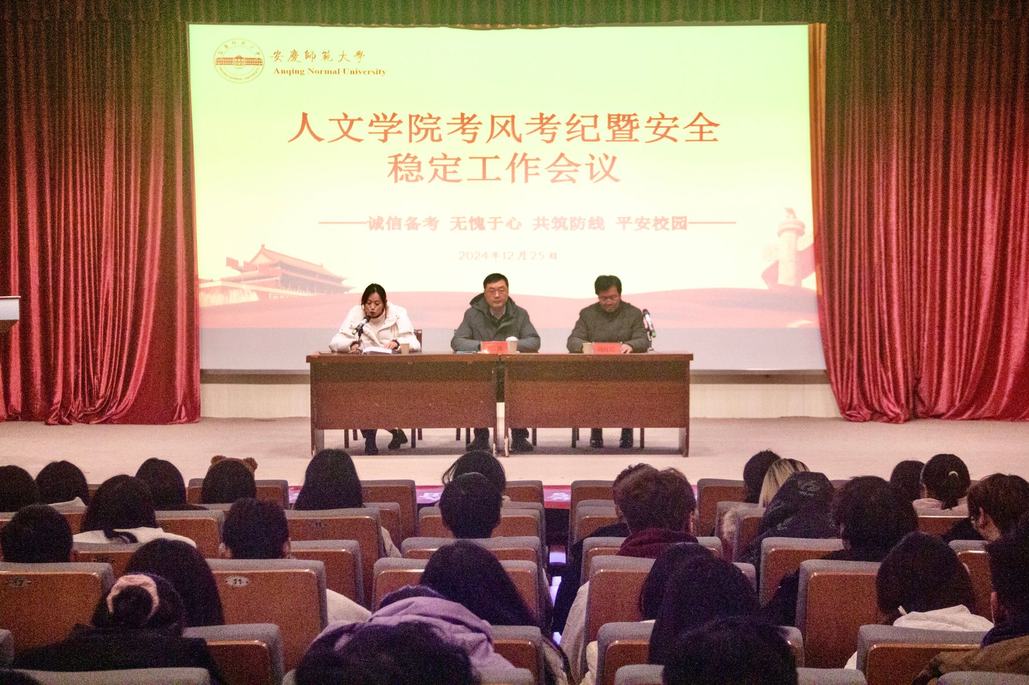 12月25日下午,beat365英国官方网站在图书馆报告厅举办考风考纪暨安全稳定工作会议。beat365英国官方网站党委书记王波,副院长周红兵出席会议,全体辅导员及各班学生骨干参加会议,会议由学院团委负责人主持。