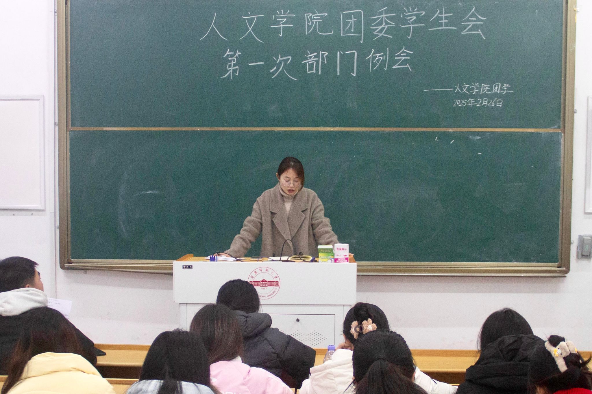 学生会主席潘晨宇同学领学了相关学习内容。各部分负责人从部门建设、思想领导、人员变动、工作安排等方面展开交流,回顾了过去团学工作得失,同时梳理了本学期团学工作计划。