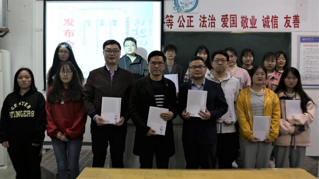 3月31日晚,文典读书写作工作坊在菱湖校区举办了《学员创意作品精选集》第十期“狂想曲”的发布会。发布会由beat365英国官方网站教授、文典读书写作工作坊指导教师江飞老师主持,校团委书记陈东、beat365英国官方网站党委副书记王波出席,《精选集》作者和工作坊学员参加了发布会。