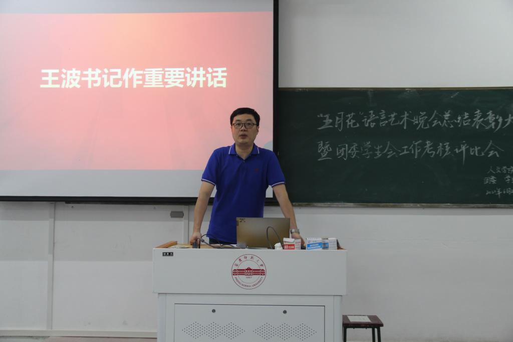 王波代表学院向参加本次“五月花”语言艺术晚会红色专场的演职人员表达最衷心的感谢,向今天获得表彰的节目表示祝贺。他指出本场晚会以“红心向党 筑梦青春”为主题,形式和内容并重,是一场有声有色的艺术党课;晚会将党史学习教育和语言艺术相结合,使全校师生在浓厚的艺术氛围中感受党史、了解党史、理解党史,是一场视觉盛宴;晚会兼蓄并收多种语言艺术形式,联系多个学院共同演绎,是“五月花”语言艺术晚会的一次创新。他希望大家不断传承和发扬“五月花”精神,通过创新丰富语言艺术表现形式,为学生开展第二堂课活动提供平台。