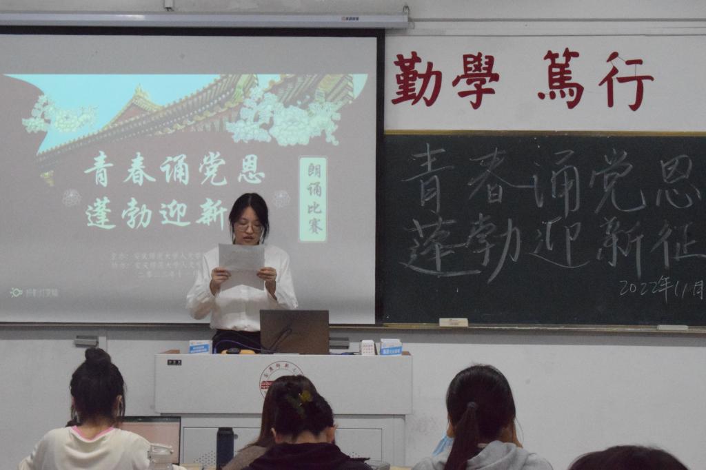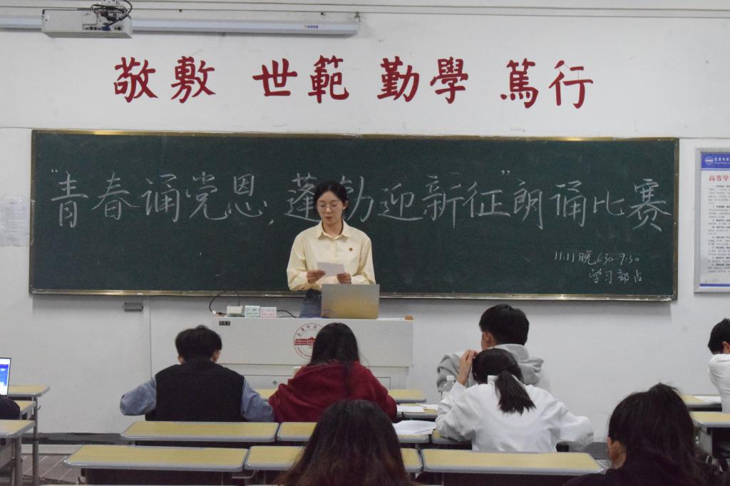 为庆祝党的二十大成功召开,弘扬党的二十大精神,提升beat365英国官方网站学子们的凝聚力和整体素质,努力营造积极进取、活力无限的氛围,beat365英国官方网站1于11月11日在教学楼310、311教室举办“青春诵党恩,蓬勃迎新征”朗诵比赛,近70名同学参加了此次比赛。