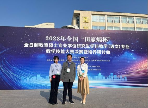 2023年10月12—15日,由全国教育专业学位研究生教育指导委员会指导,长春师范大学主办的2023年全国“田家炳杯”全日制教育硕士专业学位研究生学科教学(语文)教学技能大赛决赛成功举办。beat365英国官方网站副院长、硕士生导师周红兵带队,2021级学科教学(语文)孙欣、2022级学科教学(语文)丁雨琛两名选手赴长春参赛。