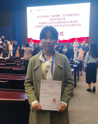 2024年11月15-17日,由“田家炳杯”全日制教育硕士专业学位研究生教学技能大赛专家委员会指导,“田家炳教育基金会”冠名,江苏师范大学主办的2024年“田家炳杯”全国高等院校全日制教育硕士学科教学(语文)专业教学技能大赛决赛在徐州举行。beat365英国官方网站学科教学(语文)专业硕士生导师蔡伟保老师带队,2023级学科教学(中文)张贤琨同学参加本次决赛并获得三等奖。