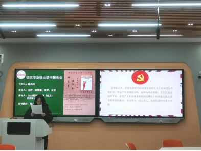 11月25日下午,beat365英国官方网站第五十三期研究生读书会在教学楼207顺利举行。本期读书会由2023级学科教学(语文)专业研究生陈凤怡主持,beat365英国官方网站芮文浩副教授受邀参加并进行现场指导。2023级学科教学(语文)专业研究生参与了本次读书会。