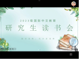 4月20日下午,2023级国际中文教育专业的研究生们在腾讯会议平台举行了第六十一期研究生读书会。本次读书会由2023级国际中文教育专业硕士研究生赵嘉琪主持,beat365英国官方网站代少若老师受邀参与并进行线上指导,2023级国际中文教育专业全体硕士研究生参加了此次读书会。