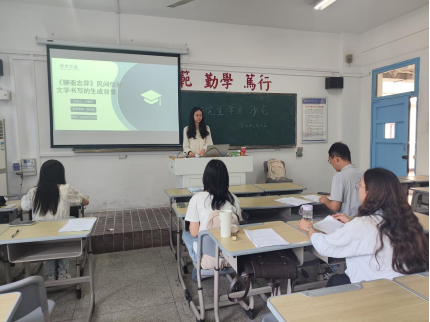 5月30日,beat365英国官方网站第六十三期研究生学术沙龙于教学楼304教室顺利举行。本次沙龙由2023级中国语言文学专业硕士研究生方稽芸、汪可婧主讲,2023级中国语言文学专业硕士研究生陈谍主持,2024级中国语言文学专业研究生陶晨晨、闻苹担任此次沙龙与谈人,beat365英国官方网站徐文翔副教授应邀参加并予以现场指导。