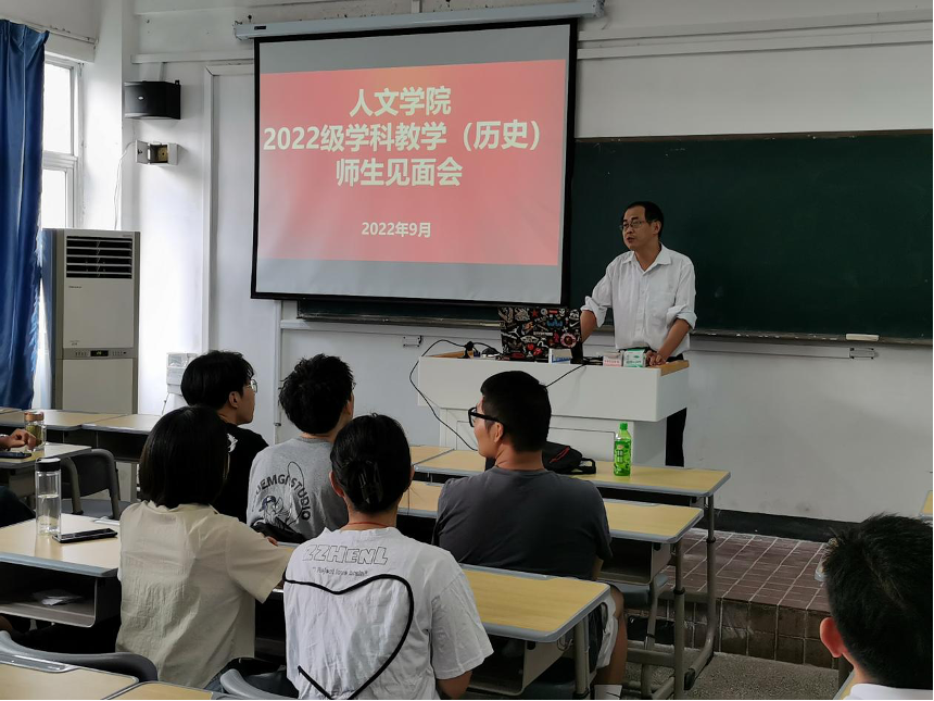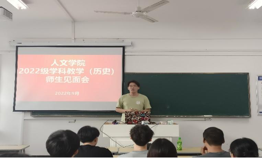 秋风万里动,日暮黄云高。为了增进师生了解,切实提升研究生培养质量,9月28日下午3点半,beat365英国官方网站在302举行了2022级学科历史硕士研究生导师见面会。全体导师、研究生辅导员江贻隆、2021级代表老生秦平捷以及2022级研究生新生参加会议,会议由梁诸英教授主持。