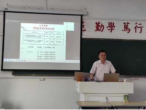 9月28日下午,beat365英国官方网站第五期研究生学术沙龙在教学楼404教室举办。beat365英国官方网站陈宗俊教授应邀参加并现场指导,20级现当代文学专业研究生刘扬天、费鸿担任此次沙龙报告人,21级现当代文学专业研究生秦婧、罗凤、宋培璇、杨文强同学为沙龙的与谈人,中国现当代文学专业全体研究生参与了此次沙龙报告。