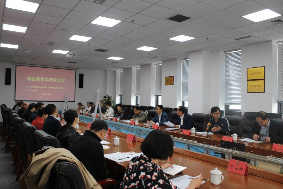 随后,研究会会员代表和我校教师代表分别围绕“再读新文化运动宣言《敬告青年》”“中国近现代思想文化谱系中的陈独秀”“安庆南水关陈延年、陈乔年烈士故居旧址保护与恢复经过”等内容作重点交流发言,董根明教授对上述发言逐一作学术点评,并就陈独秀研究现状和研究重点提出意见和建议:一要解放思想,要在陈独秀及其相关历史人物群体的研究上做好、做足、做大文章;二要善于利用安庆的地缘优势,将安庆打造成为全国陈独秀研究的一个高地;三要在资料汇集整理上下足功夫,在扎实的史料基础之上将陈独秀研究推向深入;四要拓展学术研究视角,以学界认可的学术规范、学界认同的研究方法,与全国乃至全球陈独秀研究的学者展开高层次对话。