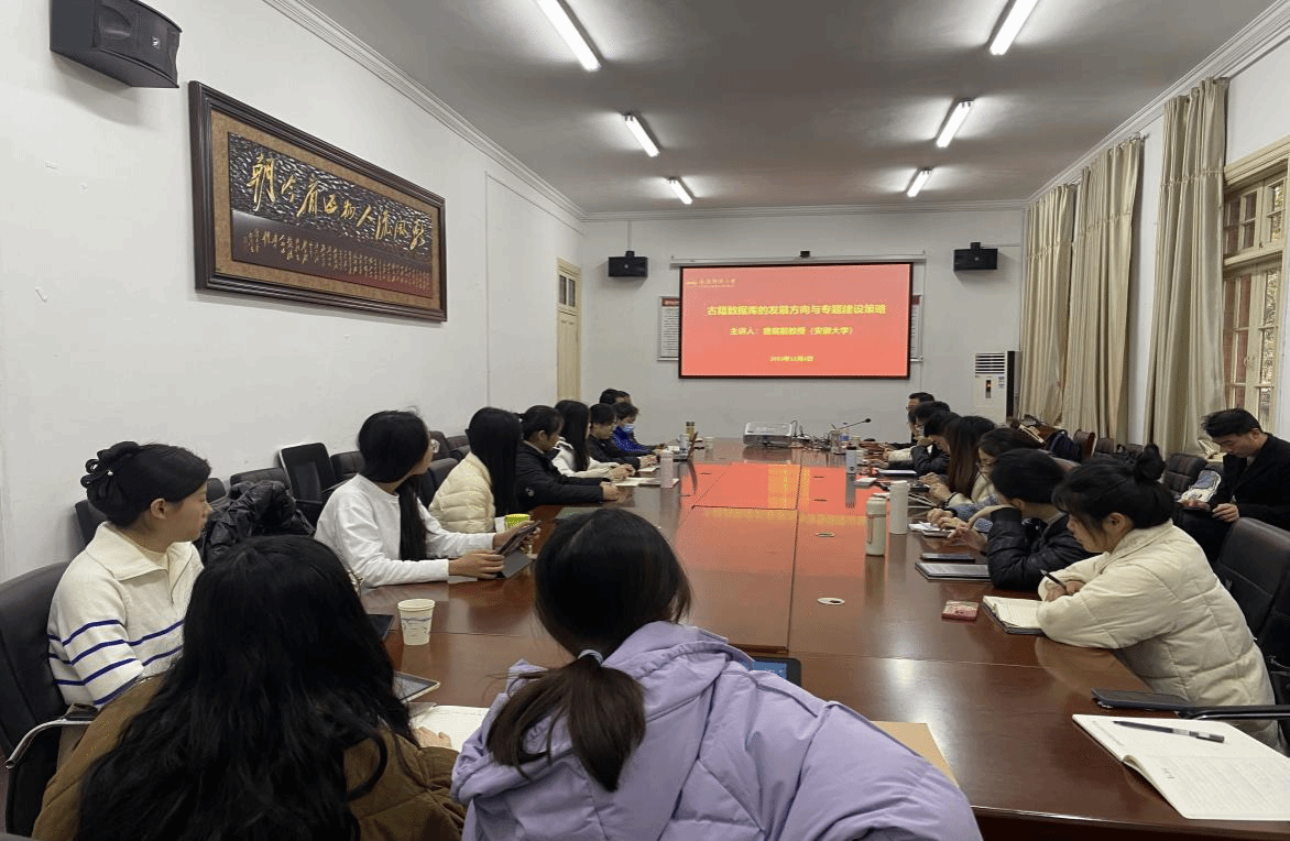 12月4日上午,安徽大学文学院副教授唐宸应邀做客敬敷人文讲坛,主讲题为“古籍数据库的发展方向与专题建设策略”学术讲座。本场讲座由皖江文化数字化保护与智能处理重点实验室童岳敏教授主持,beat365官网部分教师及研究生参加了本次活动。