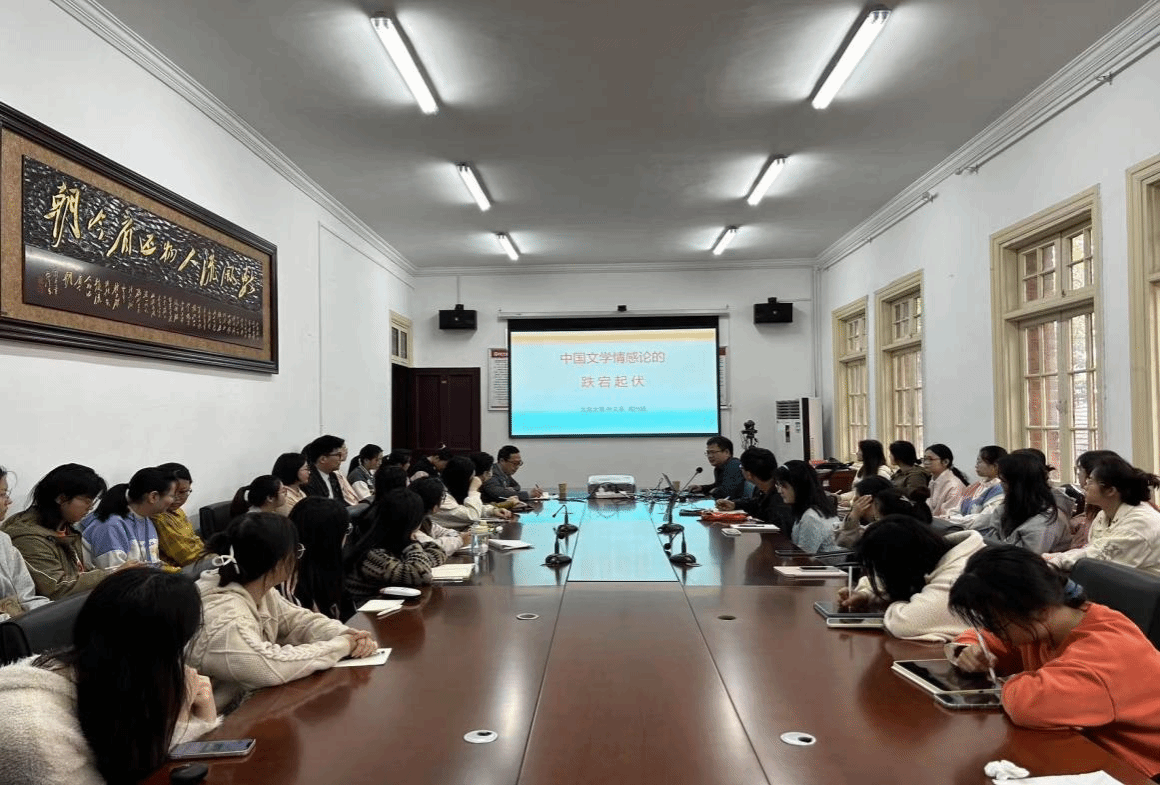 周兴陆教授结合具体的作家作品,分别从先秦、汉代、魏晋、唐宋、明代、清代、“五四”等不同时期详细梳理了中国文学情感论的发展历程,深入阐述了它的流变及成因。讲座结束后,他还和现场同学进行了深入交流。