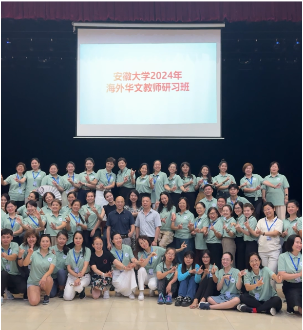 7月21日下午,应安徽大学国际教育学院邀请,beat365官网教育部语合中心“国际中文教育与黄梅戏沿'一带一路’国家的协同传播研究”项目团队携手安徽再芬黄梅艺术剧院,在安徽大学磬苑校区大学生活动中心,为安徽大学2024年“华文教育·华文教师”研习班举办了一场别开生面的黄梅戏演讲及体验活动。来自越南、缅甸、美国、新西兰、马来西亚、印度尼西亚、日本、英国、西班牙等23个国家的79名海外华文学校校长和老师现场参加了此项活动。