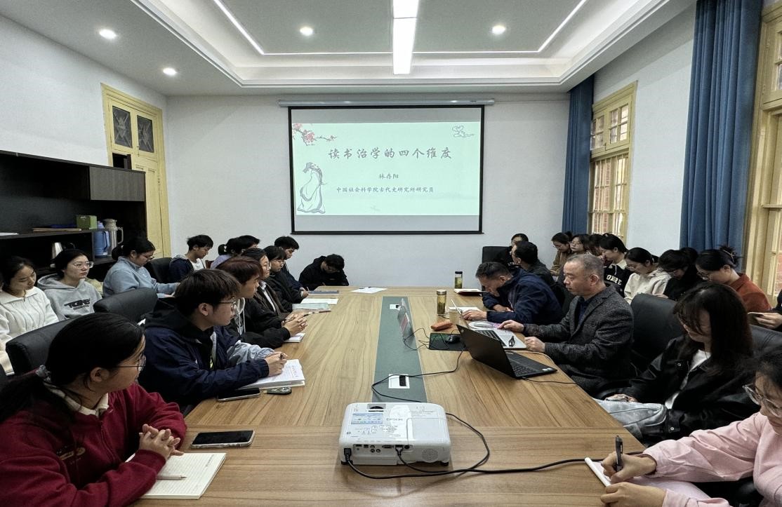 11月7日,中国社会科学院清史研究室主任、中国社会科学院大学历史学院博士生导师林存阳应邀做客敬敷人文讲坛,在菱湖校区红楼二楼会议室作了题为“读书治学的四个维度”的学术讲座。讲座由beat365英国官方网站董根明教授主持,部分青年教师和研究生、本科生参与了此次活动。