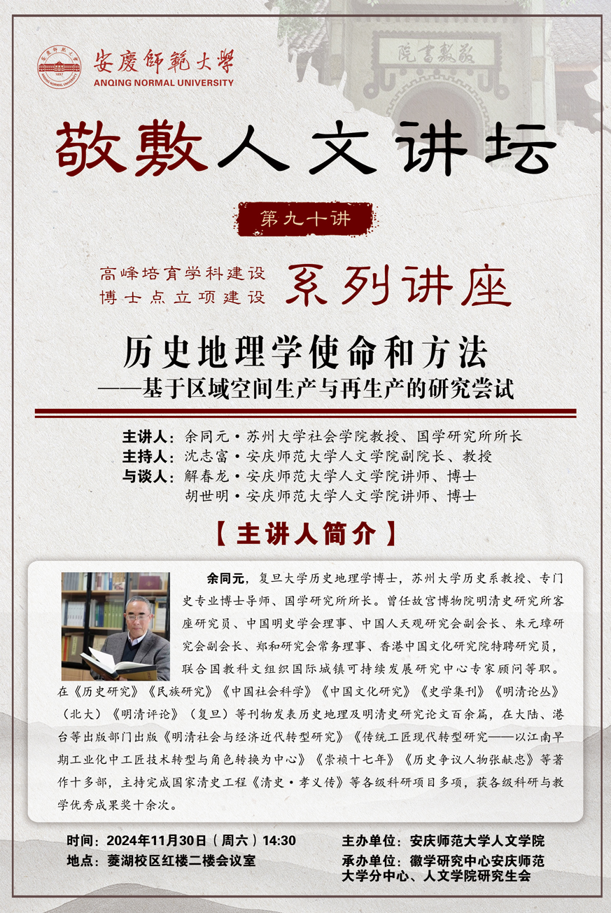 【敬敷人文讲坛(90)】历史地理学使命和方法 ——基于区域空间生产与再生产的研究尝试