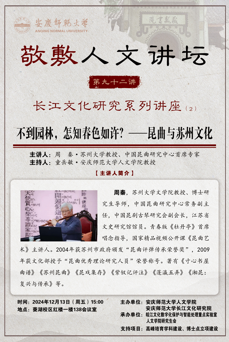 【敬敷人文讲坛(92)】不到园林,怎知春色如许? ——昆曲与苏州文化
