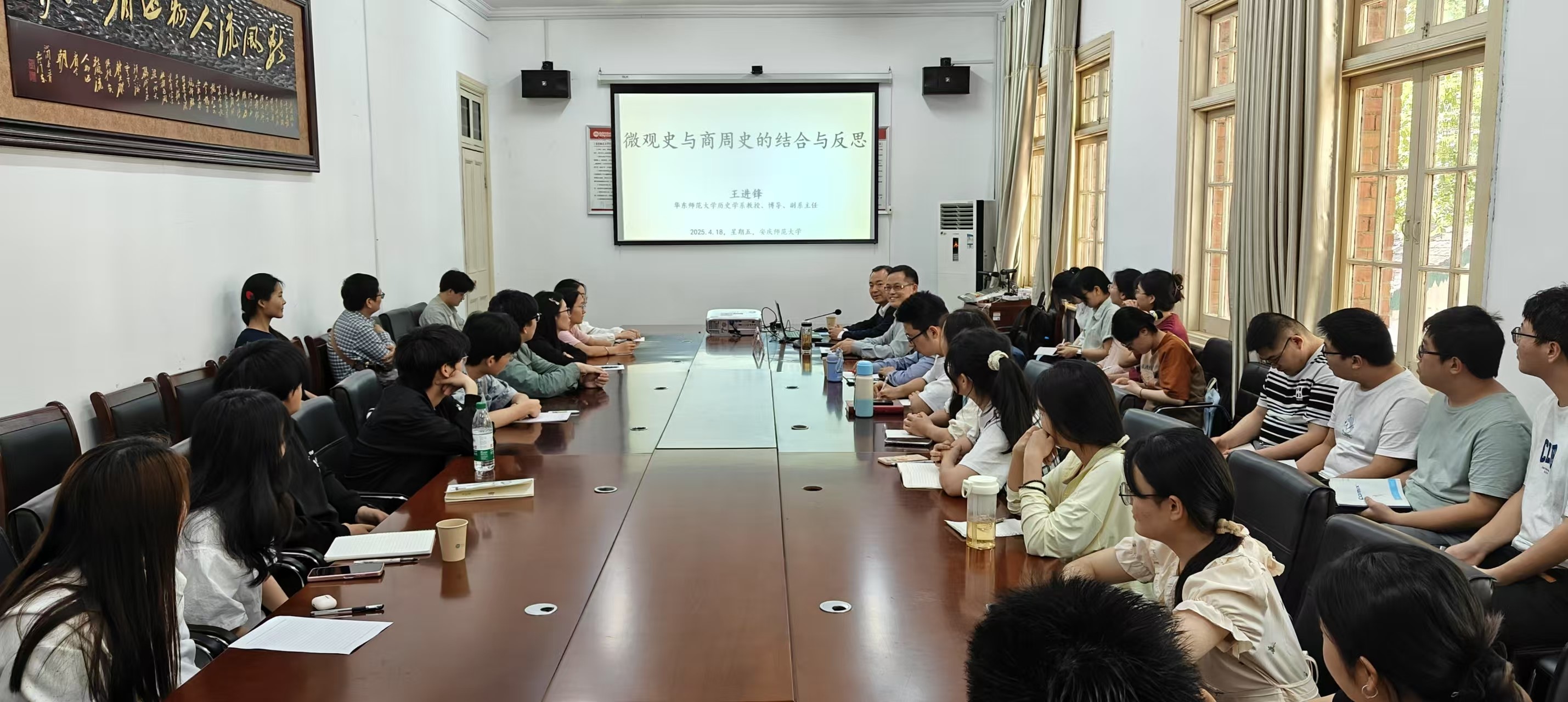 4月18日,华东师范大学历史学系副系主任、博士生导师王进锋教授应邀做客敬敷人文讲坛,在菱湖校区二楼会议室作题为“微观史和商周史的结合与反思”的学术讲座。本次讲座由beat365英国官方网站副院长沈志富教授主持,beat365英国官方网站部分青年教师和研究生、本科生参与活动。