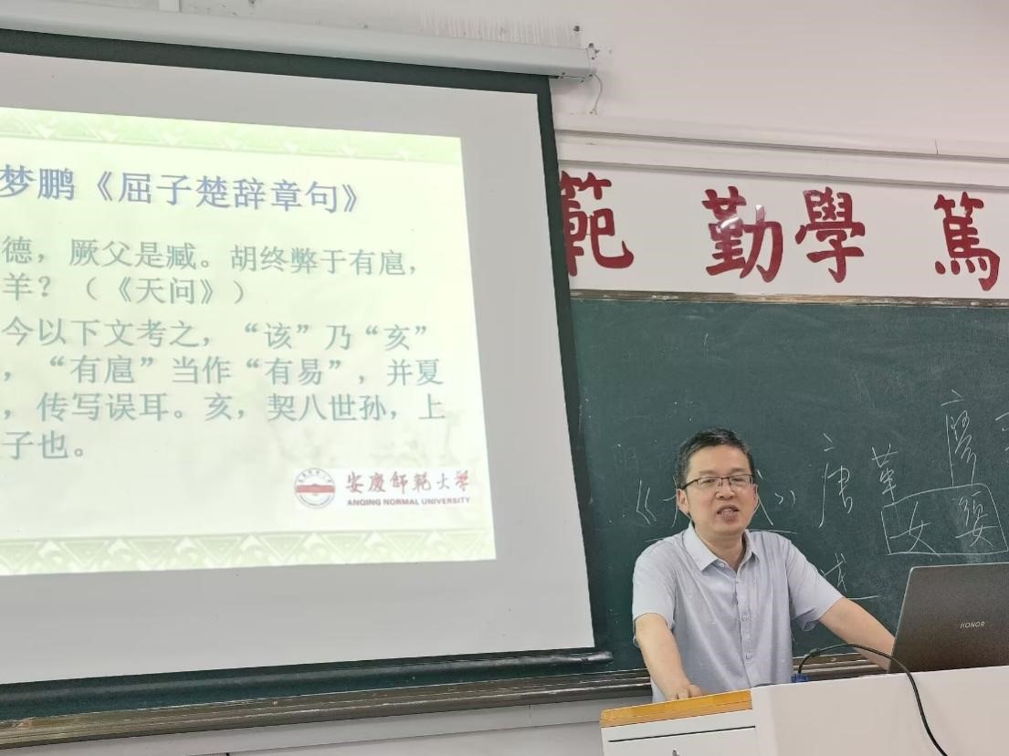 5月20日下午,第34期菱湖学术沙龙在304教室举行,beat365英国官方网站谢模楷教授作“屈原及其楚辞研究的困境与思考”的报告,beat365英国官方网站赵长杰博士担任主持人,2023级文典班全体同学聆听了谢老师的精彩演讲。