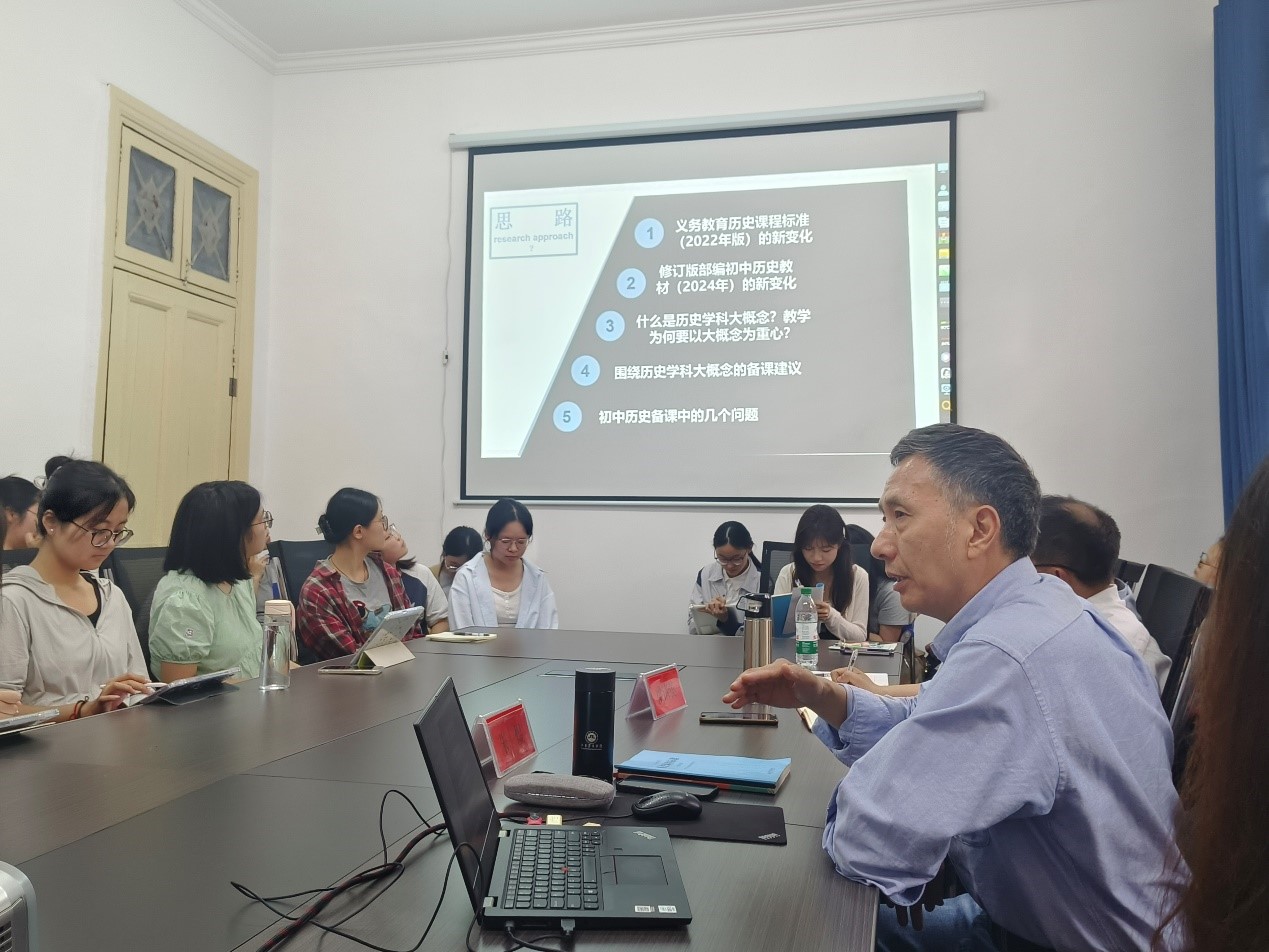 5月27日,“文典·教育名家讲坛”第七讲在红楼138会议室举行。扬州大学社会发展学院博士生导师朱煜教授应邀作“基于新课标、新教材备好初中历史课”专题讲座。beat365英国官方网站青年教师、历史学科研究生、本科生现场聆听讲座,讲座由beat365英国官方网站梁诸英教授主持。