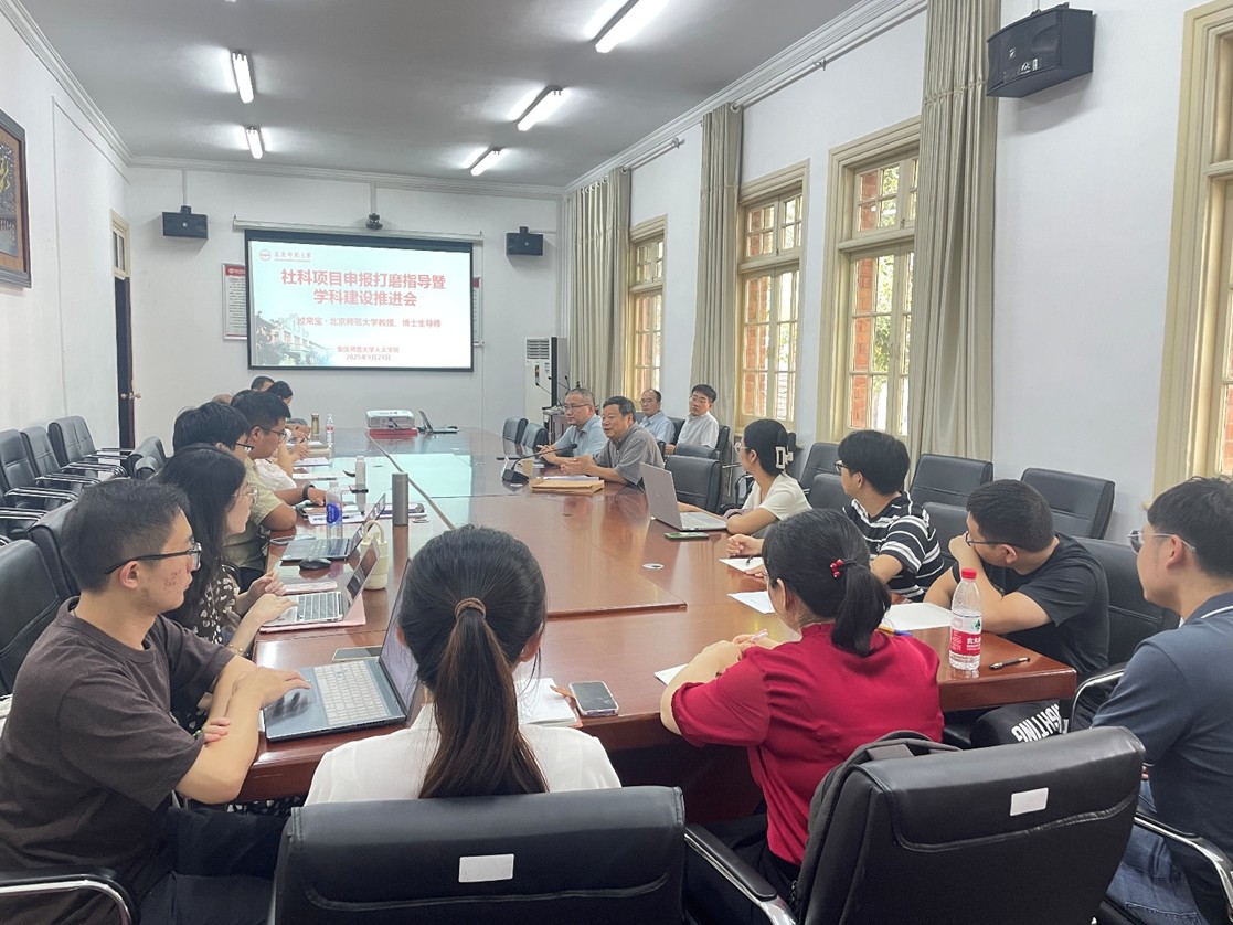 为深入贯彻落实国家关于推动哲学社会科学高质量发展的战略部署,进一步提升beat365官网科研项目申报质量与学科建设水平,2025年9月29日,北京师范大学文学院教授、博士生导师过常宝应邀莅临beat365英国官方网站,开展了题为“新时代背景下人文社科项目的申报策略与学科建设路径”的专题指导活动。beat365英国官方网站骨干教师及青年教师代表参加活动,beat365英国官方网站院长汪孔丰主持会议。
