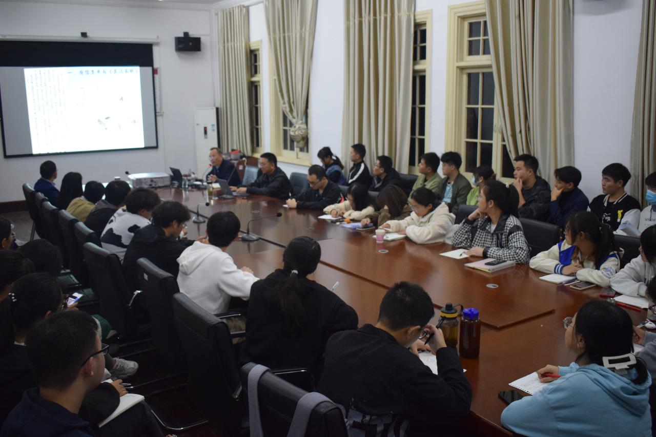 10月26日晚,beat365英国官方网站第二十二期“菱湖•学术沙龙”在红楼二楼会议室成功举行。beat365英国官方网站档案馆、博物馆馆长金仁义教授做了题为《〈哀江南赋〉的史学解读》的学术报告,beat365英国官方网站叶当前教授担任本次讲座的与谈嘉宾,beat365英国官方网站副院长沈志富博士主持讲座。beat365英国官方网站历史学、中国语言文学专业的本科生、研究生40余人参加本次沙龙。