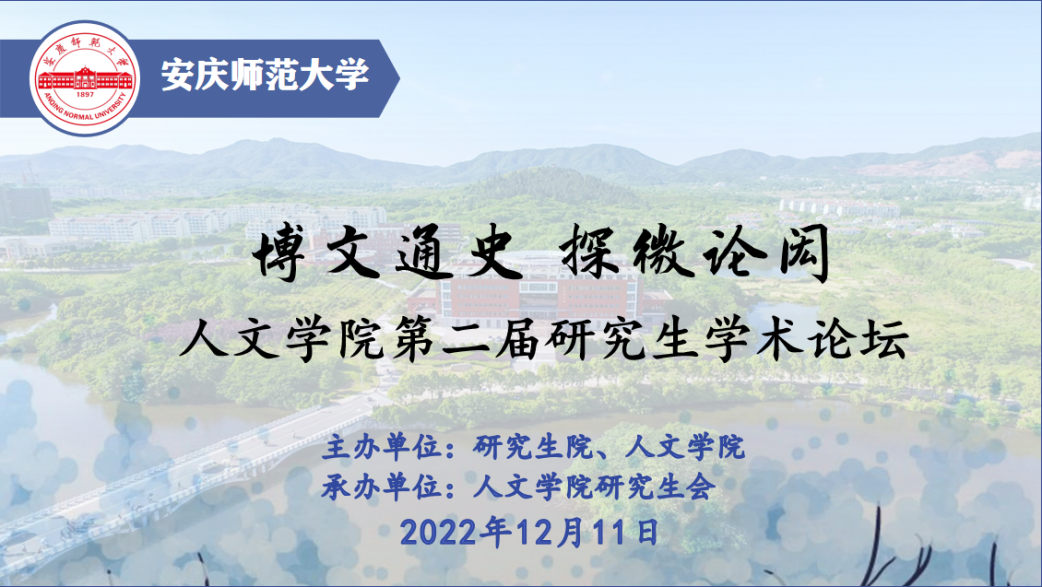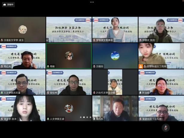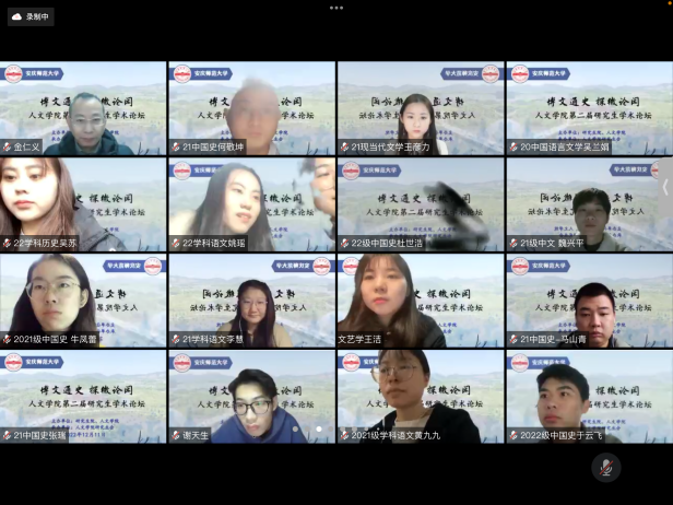 12月11日,“博文通史,探微论闳”beat365英国官方网站第二届研究生学术论坛通过线上如期举行。本次论坛得到了校研究生院的大力支持,由开幕式、主题报告、分组讨论和闭幕式等环节组成。学校办公室主任、beat365英国官方网站党委书记张红飞,党委研究生工作部部长、研究生院院长华秀梅,beat365英国官方网站党政班子成员汪孔丰、王波、沈志富、金松林、周红兵,beat365英国官方网站学术委员会主任梅向东,beat365英国官方网站教学工作委员会主任、皖江历史文化研究中心主任叶当前,校档案馆(博物馆)馆长金仁义,研究生导师代表、校内外专家、评议老师以及中国语言文学、中国史、学科教学(语文)(历史)等专业的研究生和部分本科生共150余人相聚云端。论坛开幕式由beat365英国官方网站副院长沈志富主持。
