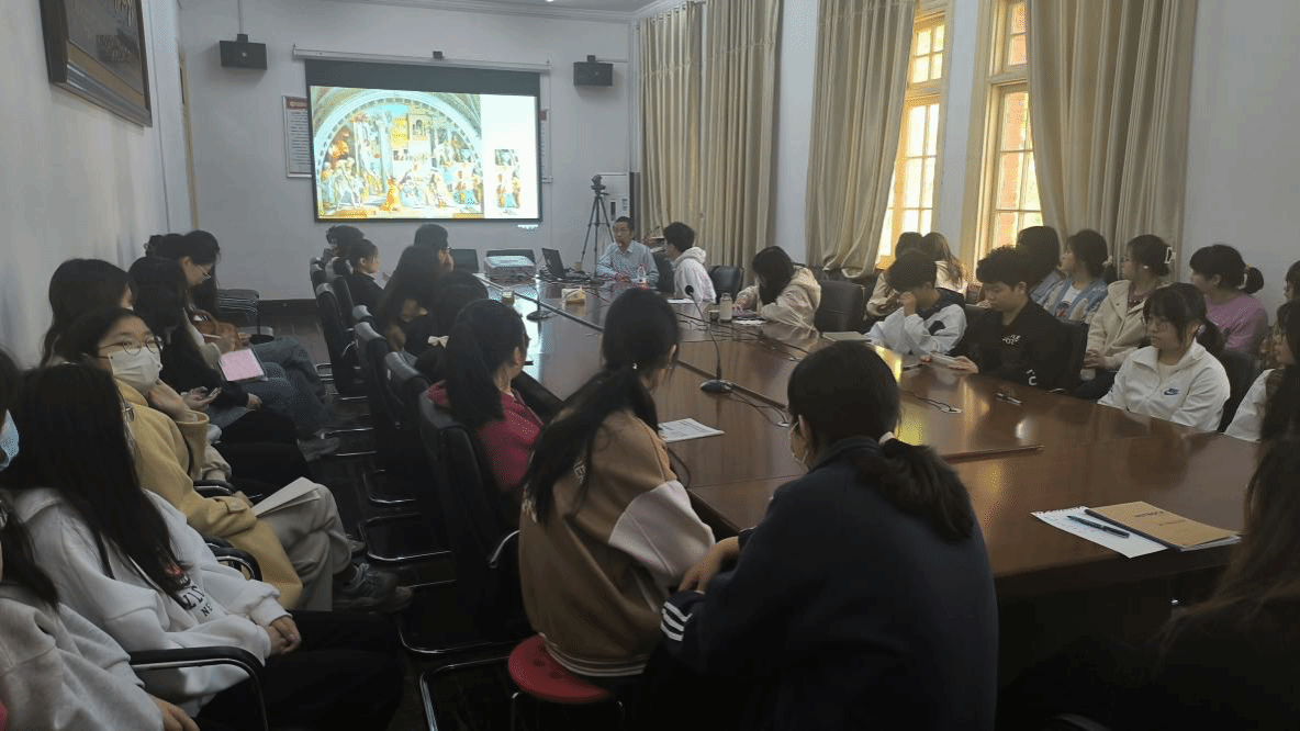 吴琼教授借用弗卢塞尔的观点明确了姿势的定义,框定其研究范围,呈现了姿势的丰富内蕴与多种研究可能。接着,通过对瓦尔堡的观念和理论的介绍,引出情念程式与原型姿势的概念并拓展开来,结合多幅画作,从殉难与悲痛的姿势、人“物”的姿势与“进入”的姿态等三个方面,为在座师生介绍了姿势在文艺复兴时期的多种表现及其发展情况。最后,吴琼教授还强调历史性对人文研究的重要性,认为学术研究不该自立于历史背景之外。