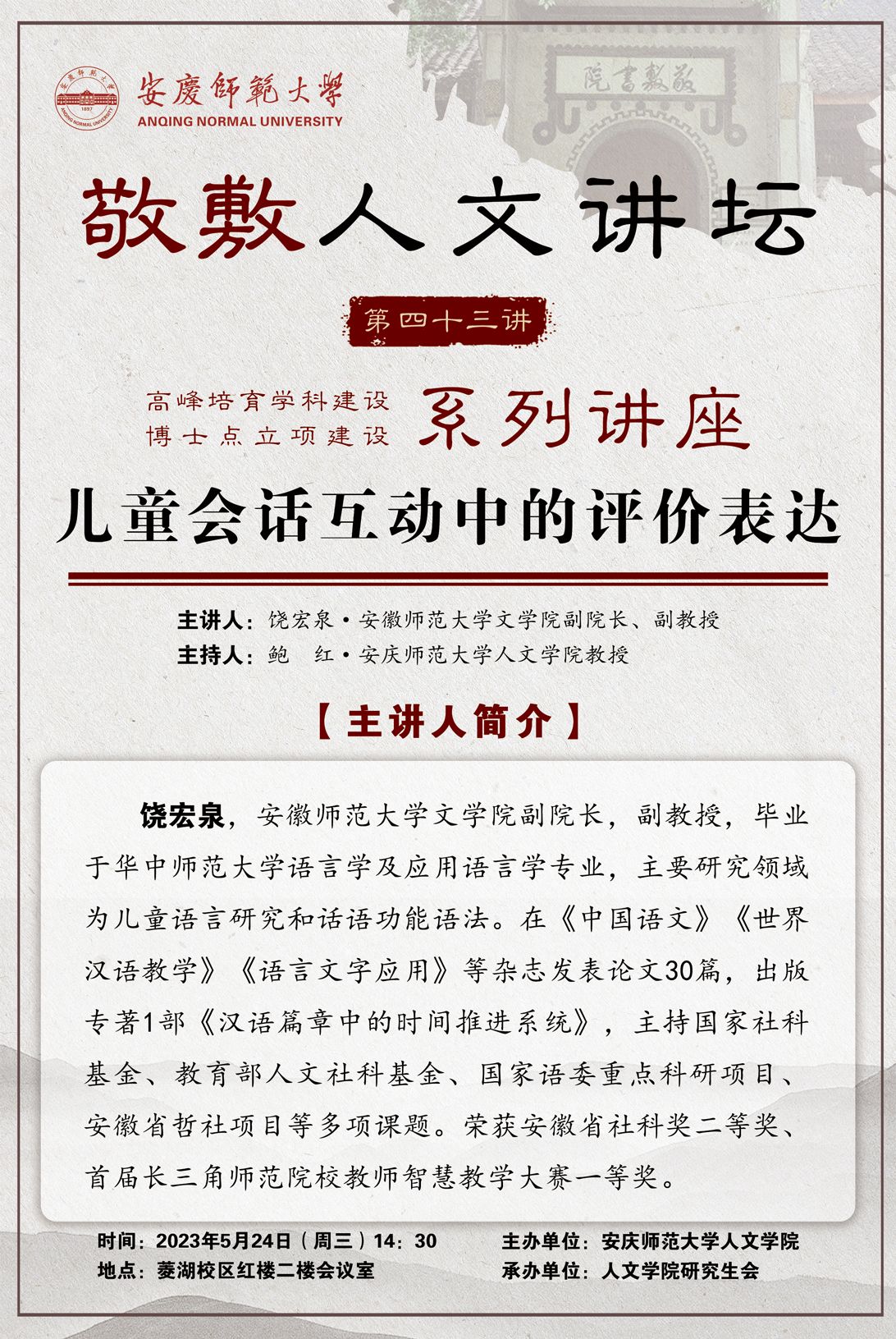 上一篇:【敬敷人文讲坛(44)】当好中外交流使者,讲好中国精彩故事