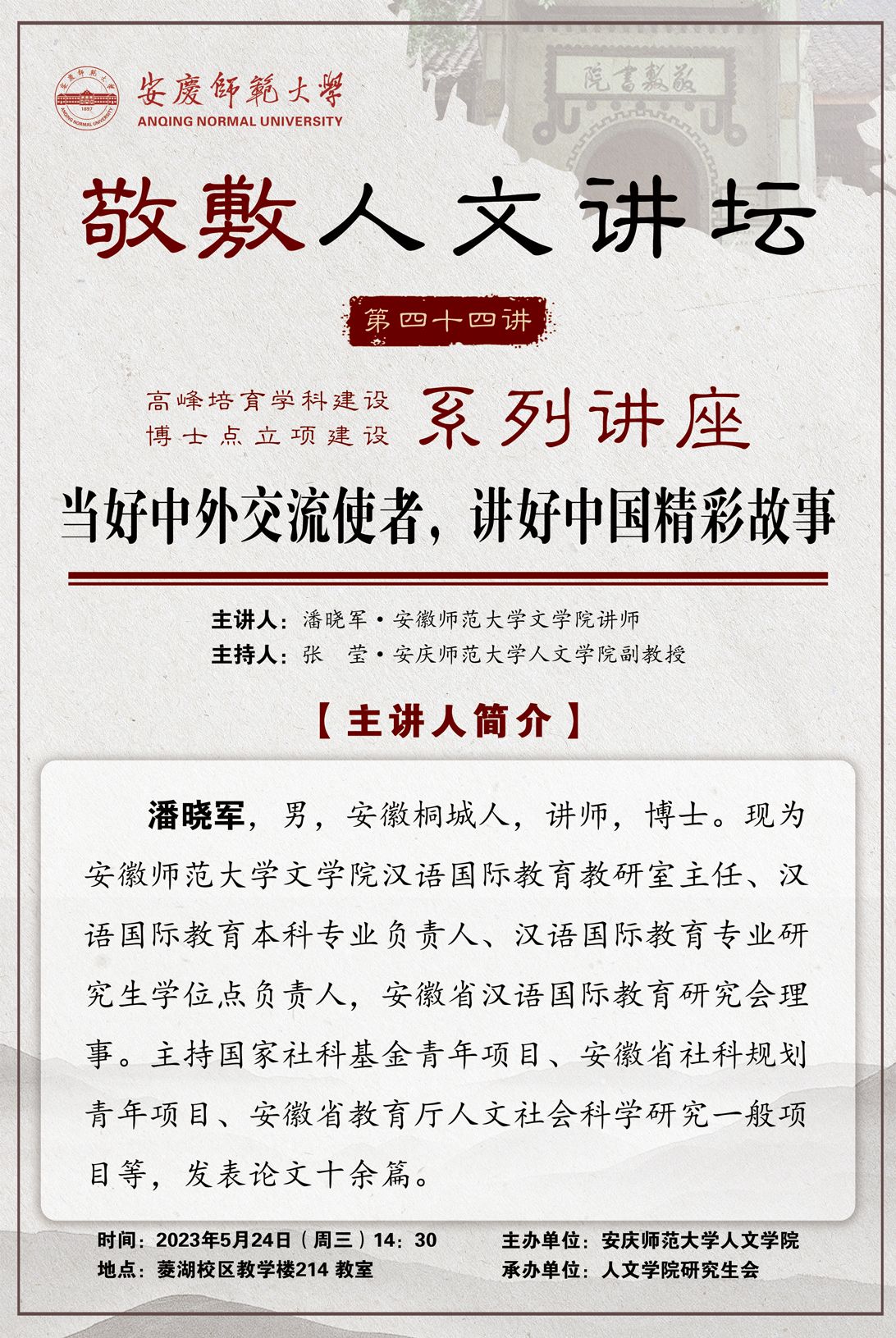 【敬敷人文讲坛(44)】当好中外交流使者,讲好中国精彩故事