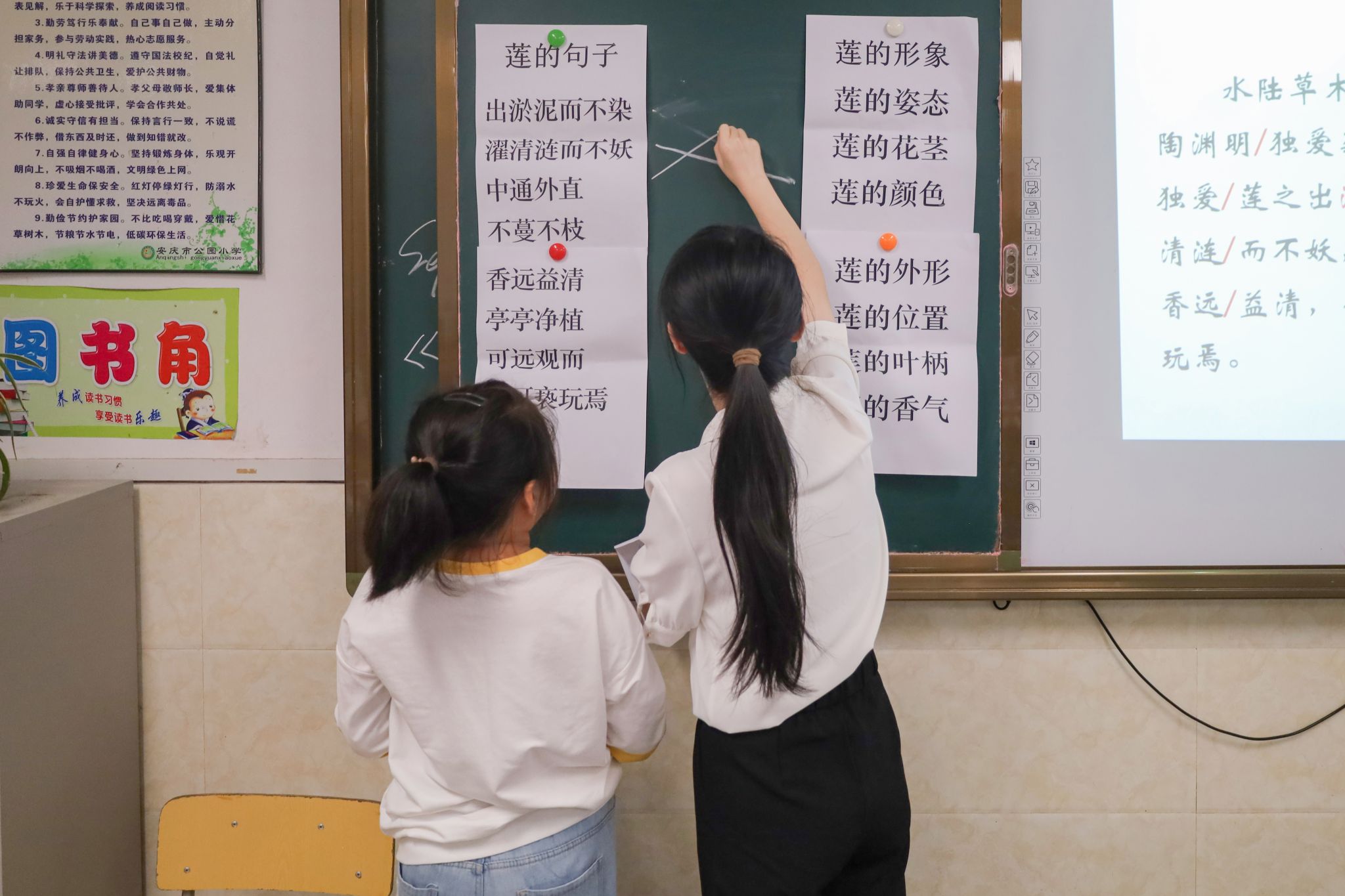会后,与会人员旁听了学科教学(语文)方向2022级研究生丁雨琛面向五年级学生关于“中华传统文化经典导读”的初次授课。