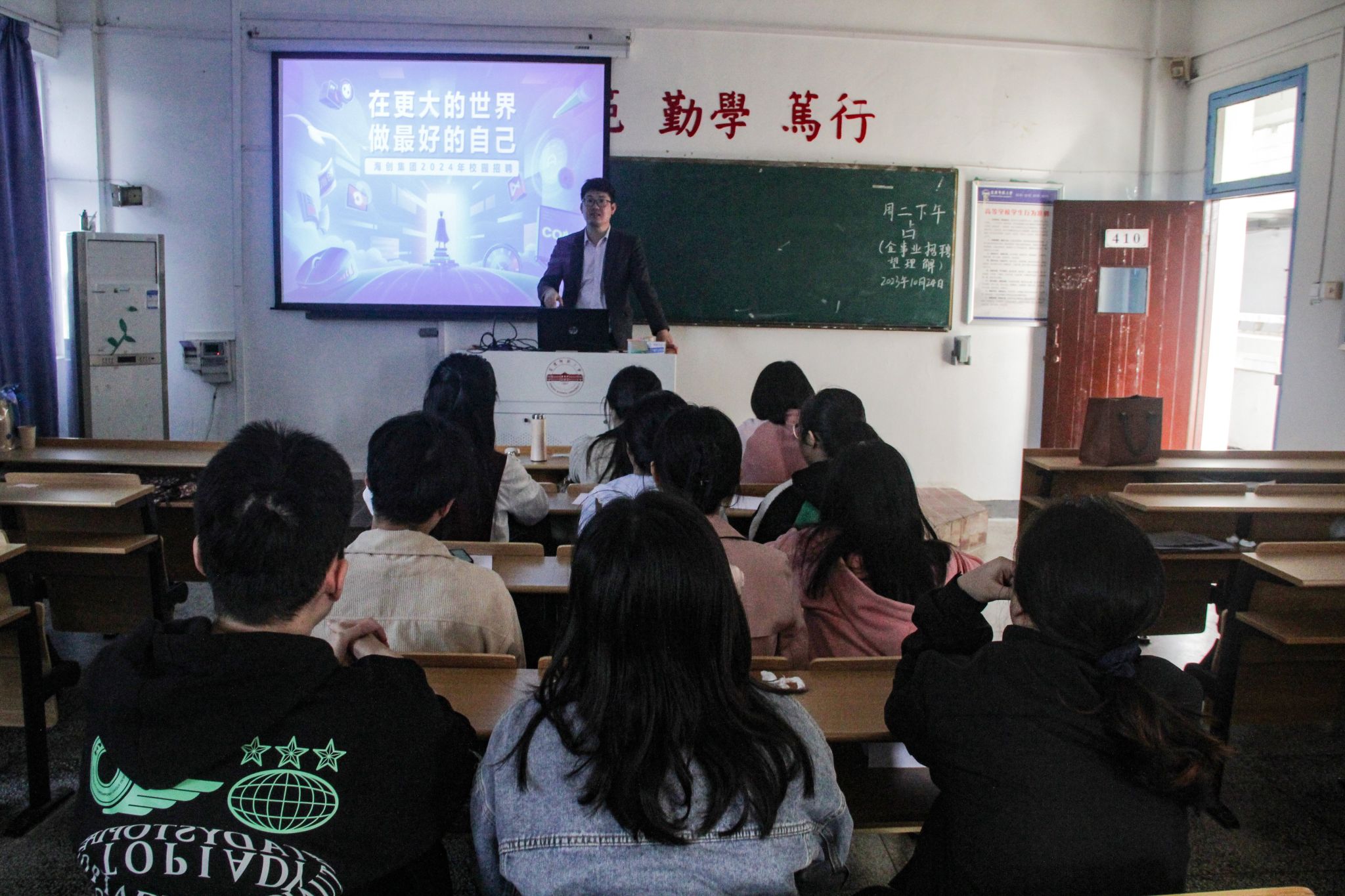 10月24日,beat365英国官方网站在教学楼410举行了2024届毕业生首场企业类专场招聘会,吸引了三十多名毕业生前来应聘。本次招聘会分为企业代表宣讲、学生自由提问和现场投递简历三个部分。