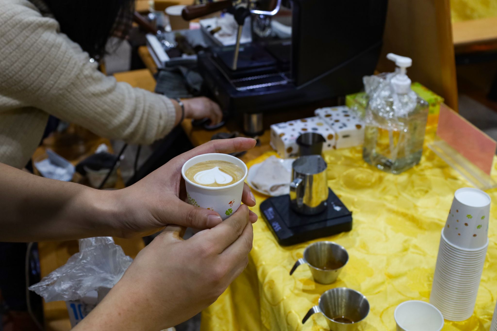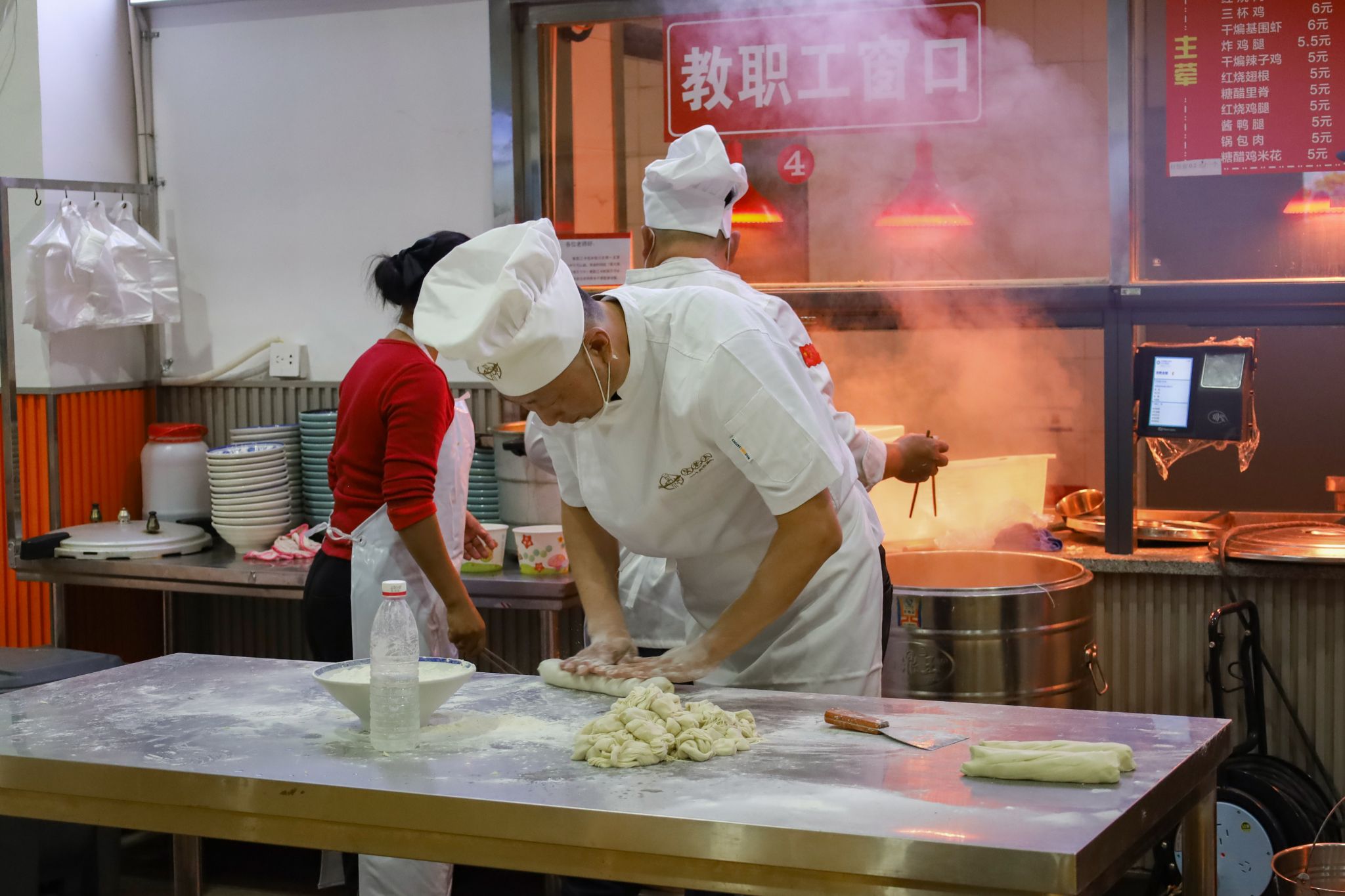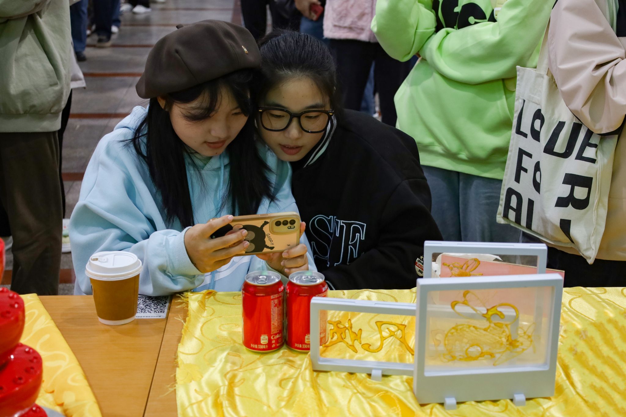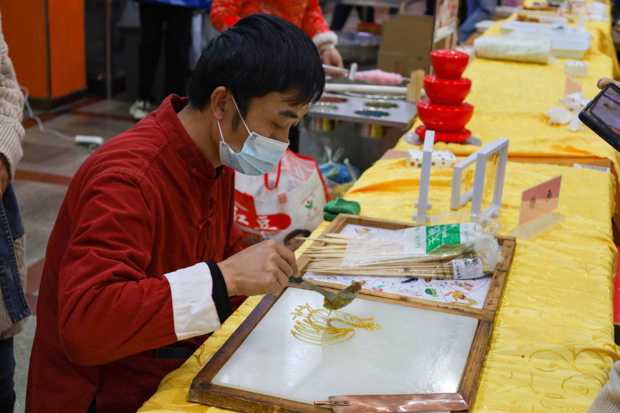 拉面、糖画等中国传统非遗美食成功刷屏了在场师生的朋友圈,成为现场的一大亮点。糖画师傅早早地熬好糖浆,缕缕金黄糖丝自汤勺中泄下,随着师傅快速地移动手肘,一只栩栩如生打鸣的公鸡便在他手下诞生。负责制作棉花糖的阿姨也在准备中,各色的棉花糖自炉中跳出,阿姨手握一根竹签,在炉内转动,一只彩色小兔便已成形。拉面师傅表演着独家绝技,只见胖墩墩的面团在他的双手中上下舞动拉扯,变成了细长的面条,下入锅中,袅袅白雾给寒冬中beat365英国官方网站的学子送去“温暖”。