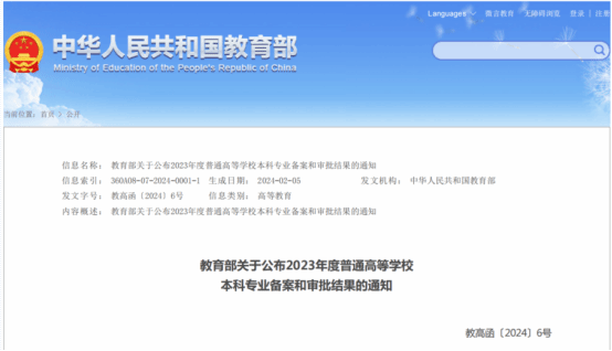 近日,教育部印发《教育部关于公布2023年度普通高等学校本科专业备案和审批结果的通知》(教高函〔2024〕6号),beat365官网申报的数字人文(专业代码:050110T)新专业获批设置。至此,学院本科专业布点至4个,其中包括国家级一流本科建设专业1个,省级一流本科建设专业1个,校级一流本科建设专业1个,覆盖2个学科门类4个专业。