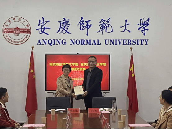 汪孔丰介绍了beat365英国官方网站的办学历史、师资力量、专业设置、国家级一流本科专业的建设情况,重点就科研平台建设、学科方向凝练等方面介绍了经验。张谦芬介绍了晓庄学院文学院的优势专业和办学特色,希望双方在专业建设、学科发展以及硕士学位授权点建设方面能达成更多的合作和交流。